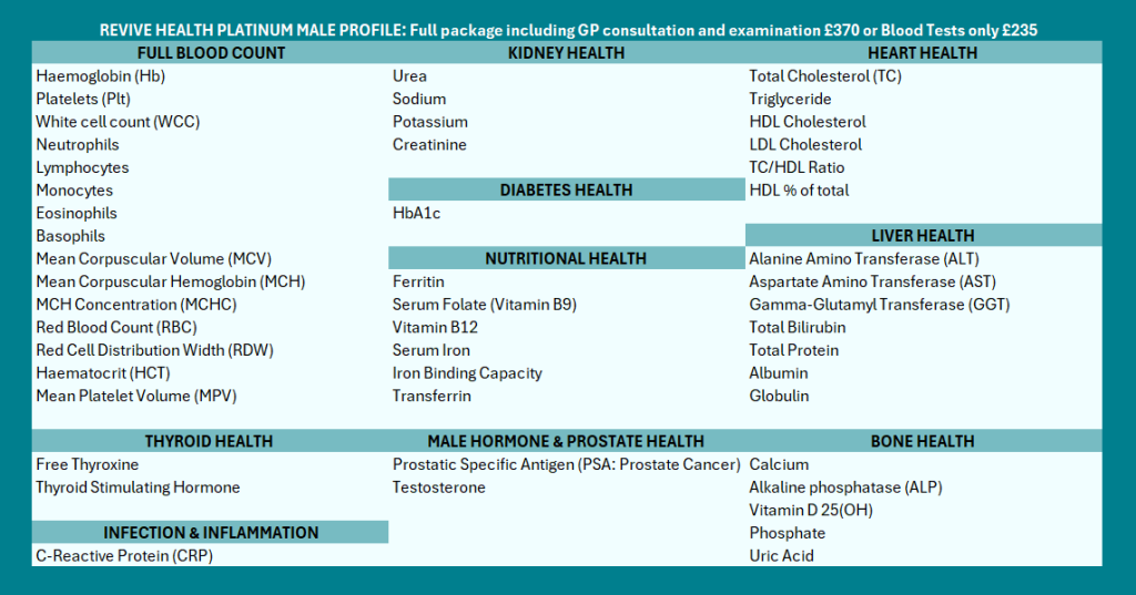 If you would like the full screening package, which includes a GP consultation and examination, this can be arranged when you attend for your blood test. (The cost of the blood test will be deducted from the full package fee).